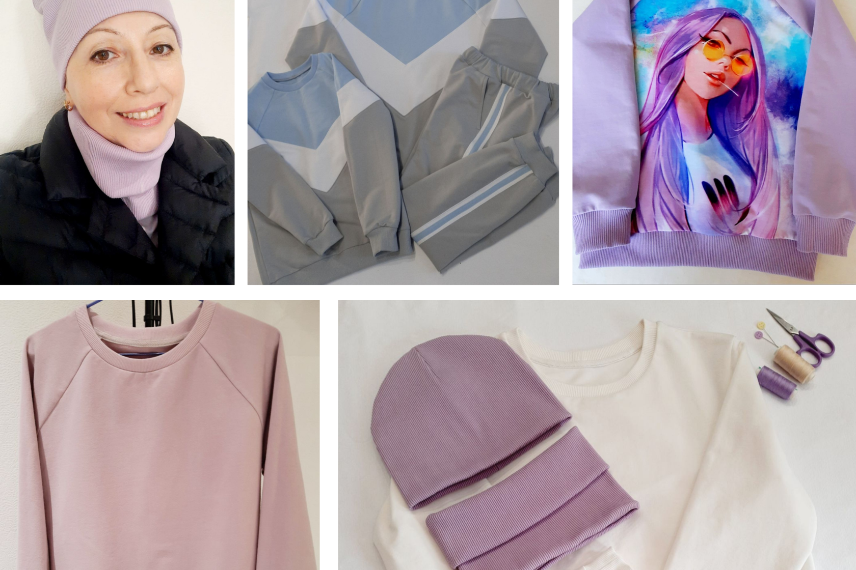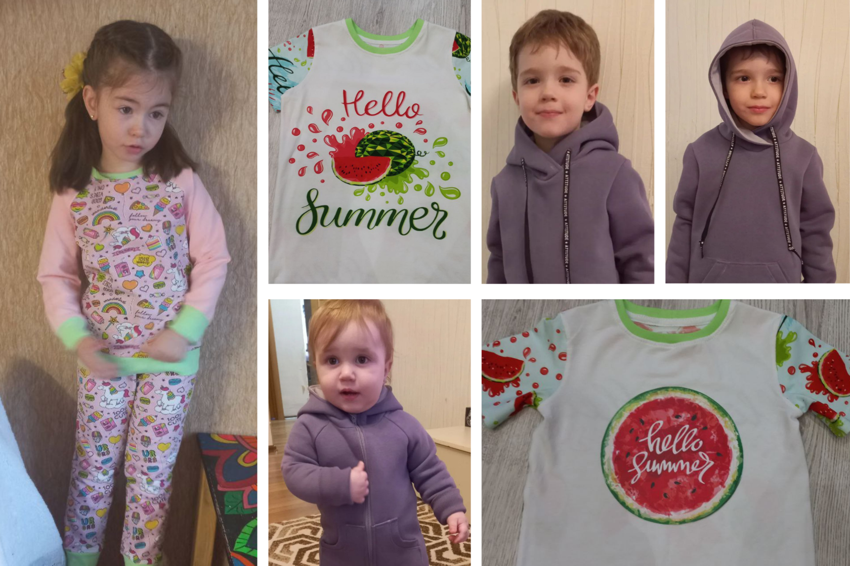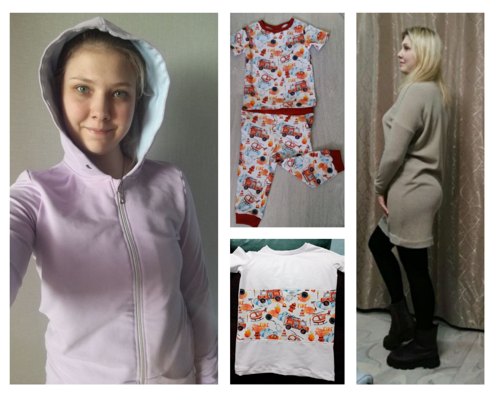 2 толстовки на молнии (с подкладом и без), худи с карманом-кенгуру, платье из вязаного трикотажа с воротником, платье-футболка с юбкой на сборке